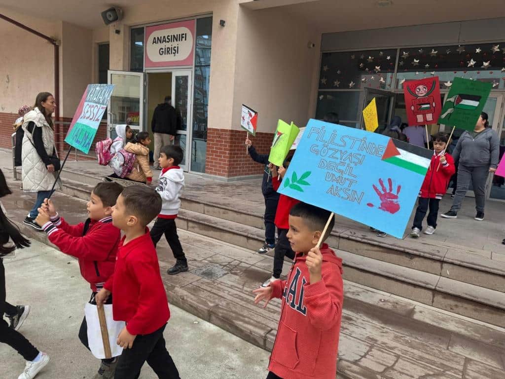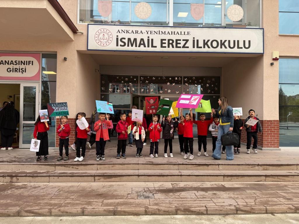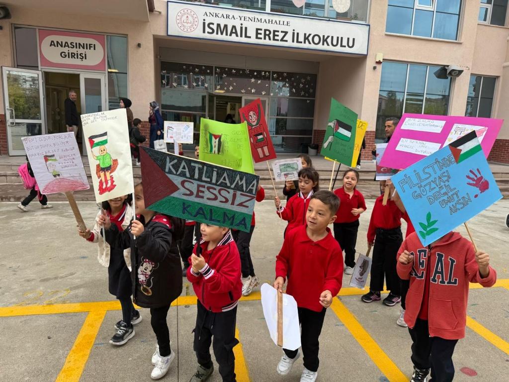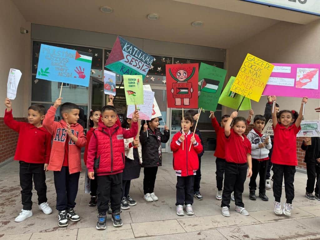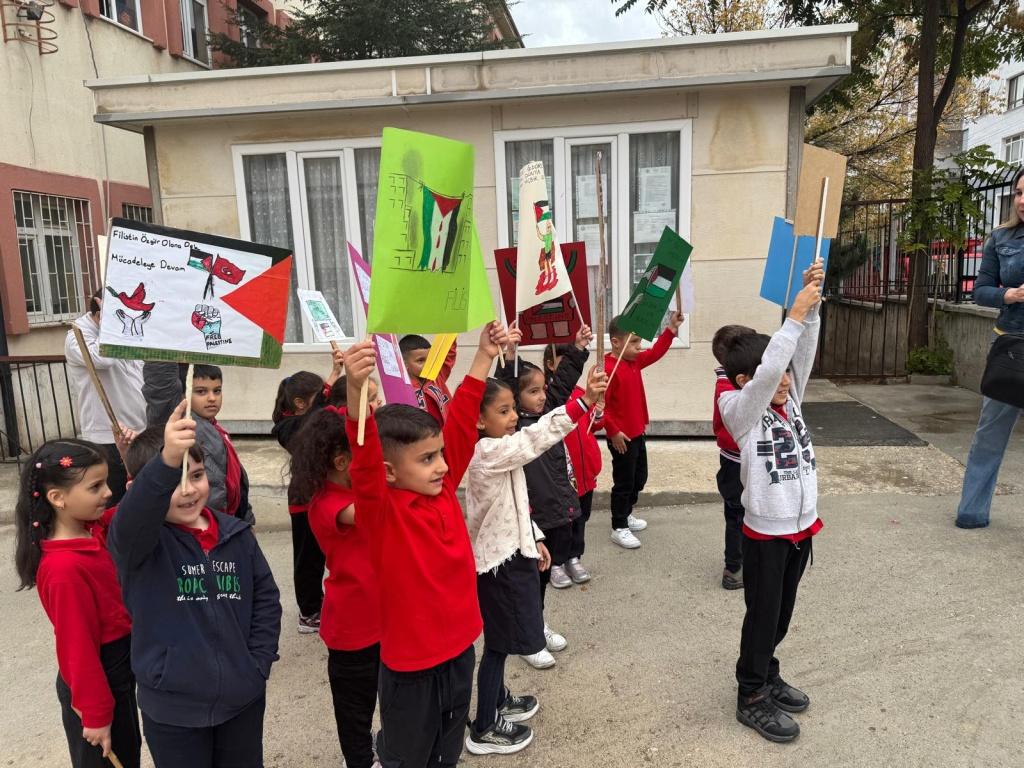 Milli Eğitim Bakanımız Sayın Yusuf Tekin'in 07.10.2025 tarihli imzası ile yayınlanan "Filistin Farkındalık Etkinlikleri" kapsamında okulumuz 1H şubesi öğretmeni Özden Çiftçi ve öğrencileri "Gazze'de çocuklar ölmesin!" sloganıyla farkındalık gösterisi yaptılar.